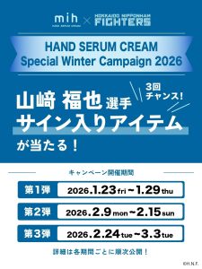 プロ野球選手として活躍する山﨑福也選手とのコラボアイテム「mih HAND SERUM CREAM」から、この冬限定のスペシャルキャンペーンが登場!